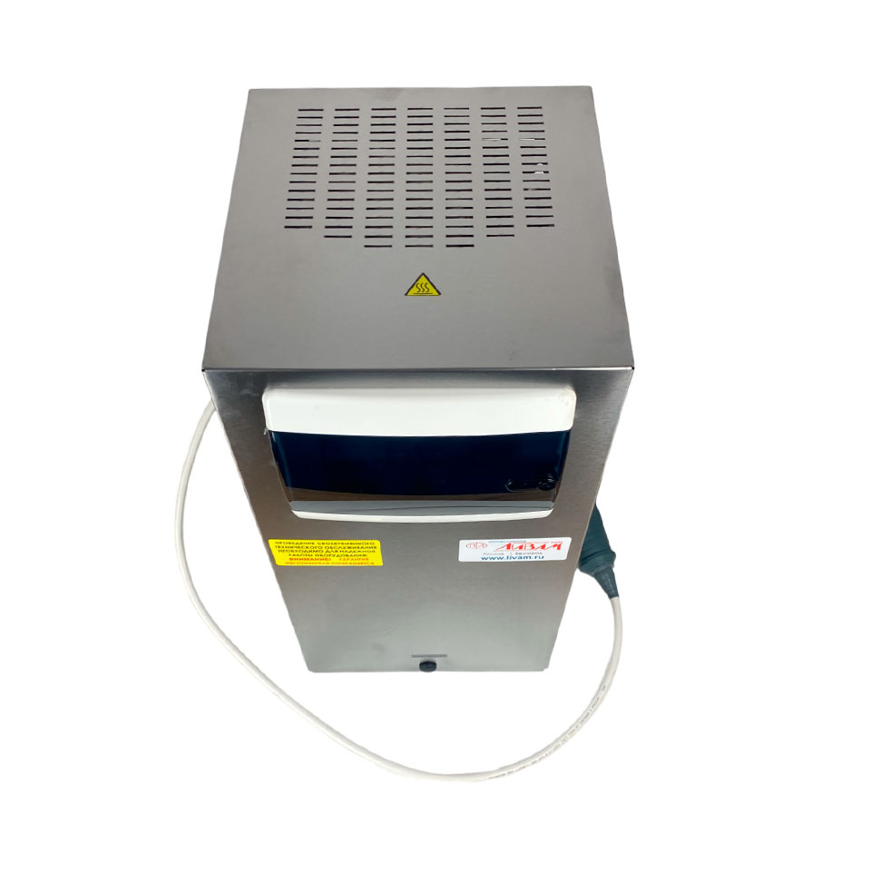 Дистиллятор оснащён специальным теплозащитным кожухом, обеспечивающим оптимальную умеренно тёплую температуру поверхности аквадистиллятора (не более 45 °С) при его работе и предохраняющий персонал от тепловых ожогов.