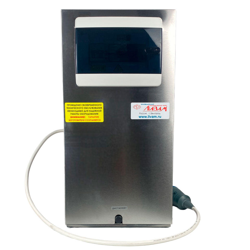 предназначен для получения дистиллированной воды 3 типа согласно ГОСТ Р 58144-2018 «Вода дистиллированная», ФС.2.2.0019.18 «Вода для инъекций» в аптеках, больницах, лабораториях, фармацевтических предприятиях по производству инъекций и других учреждениях, а также для очистки питьевой воды от радионуклидов и использования дистиллята в питьевых целях после его минерализации. В качестве нагревательных элементов используются ТЭНы из нержавеющей стали 2,7 кВт, 220 В в количестве 1-й шт.