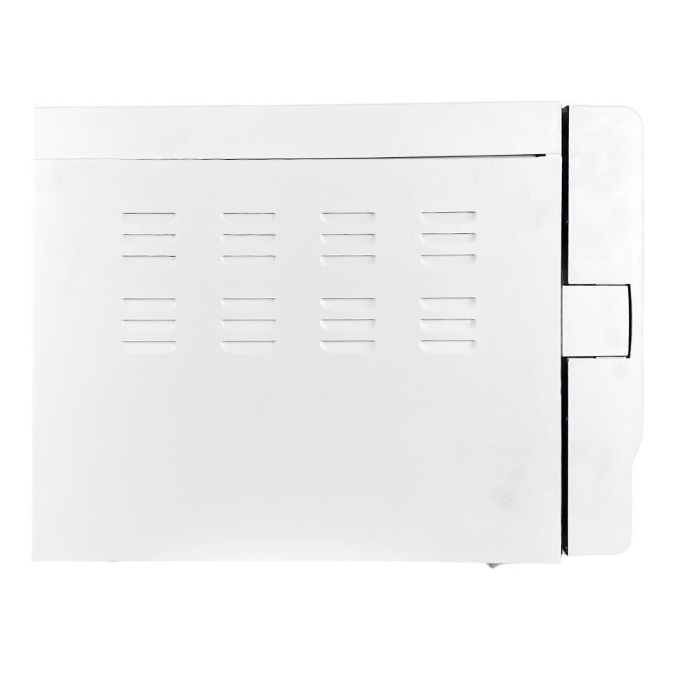 с помощью вакуумного насоса. Современная технология трёхфазного пульсирующего предварительного вакуумирования гарантирует, что горячий пар проникнет во все полости, тонкие трубочки и пористый материал, а вакуумная сушка обеспечит полную стерильность на завершающей стадии. У автоклава три программы стерилизации с температурами 121 и 134 °C. В трёх лотках размещается до 6,5 кг инструментов. Максимальная длина инструмента — 429 мм, максимальная ширина — 200 мм. Корпус сделан из медицинского пластика, рассчитанного на регулярную обработку дезинфицирующими средствами без появлений изменений цвета и неровностей поверхности. На лицевой панели корпуса рядом со штуцерами для слива воды расположен USB-порт для подключения к компьютеру. На задней панели корпуса рядом с разъёмом питания есть порт для подключения принтера.