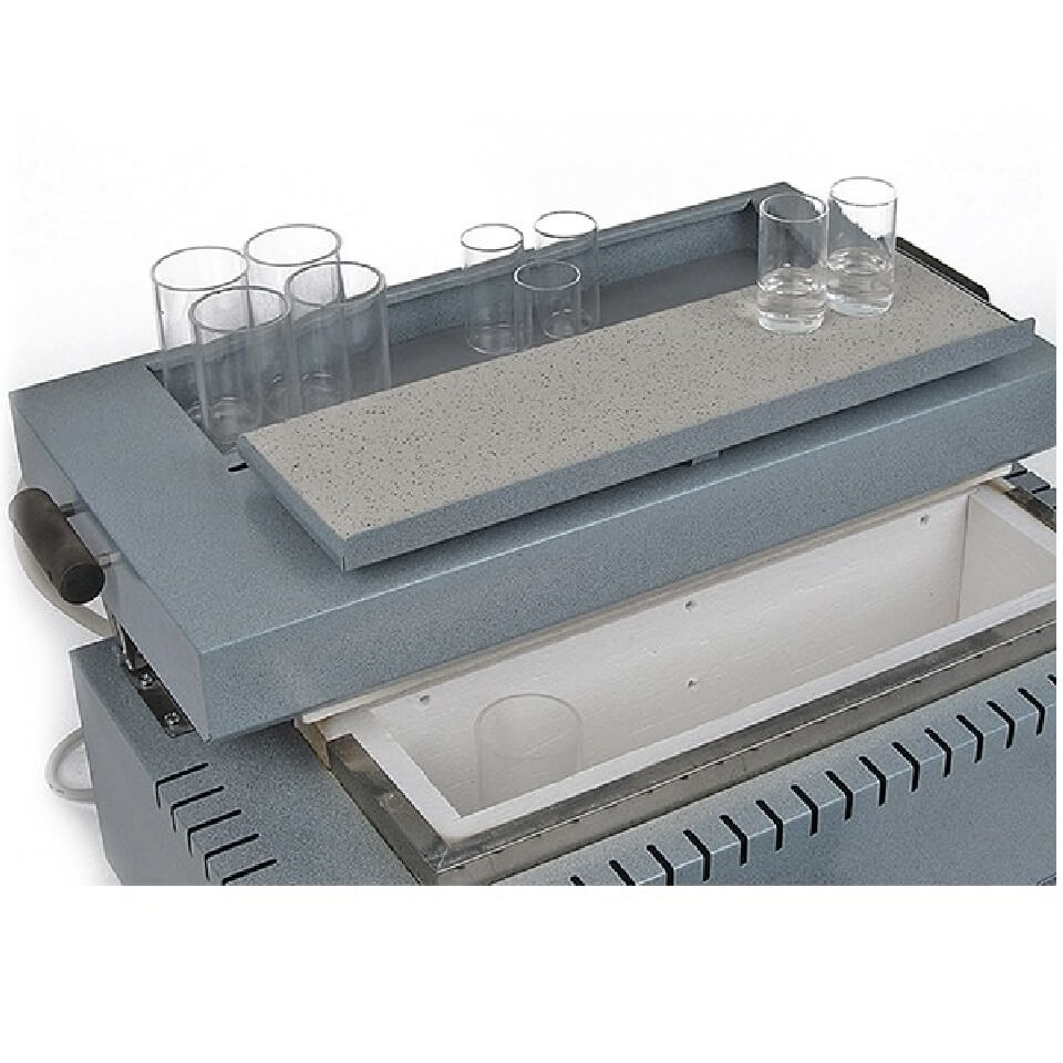 ОписаниеПрограммируемая двухкамерная печь ПДП-Аналитикапредназначена для выпаривания и озоления проб с целью их подготовки для дальнейшего анализа. Процессы выпаривания и озоления проводятся при контроле температуры и времени, что повышает удобство и эффективность процесса пробоподготовки. Имеет закрытую муфельную камеру (камера озоления) и размещённую на ней нагревательную плиту (камера выпаривания). Каждая камера имеет подставку под кварцевые стаканы (тигли), фиксирующую их положение и создающую эффект «терморубашки». Комплектуется кварцевыми стаканами (тиглями) объёмом 20 или 65 мл. Подставки под стаканчики входят в базовую комплектацию печи. Управление режимами работы камер печи ПДП-Аналитика, ввод и сохранение параметров программ термообработки осуществляют с помощью пульта управления, который соединён гибким кабелем с двухкамерной печью. Длина кабеля (1,5 м) позволяет размещать пульт управления печи вне вытяжного шкафа и повышает удобство работы с печью, т.к. даёт возможность оператору управлять печью на удаленном расстоянии, исключая контакт с агрессивной средой, возможной внутри вытяжного шкафа. Пульт управления печи хранит в памяти по 16 программ термообработки для двух камер. Каждая программа содержит по 9 этапов, характеризующихся температурой и временем. Термообработка проб в камере озоления и в камере выпаривания выполняется в соответствии с выбранной (или вновь созданной) программой. В ходе процесса термообработки оператором могут быть изменены параметры этапов программ. Печь ПДП-Аналитика имеет по сравнению с другими моделями печей ПДП более высокую производительность благодаря увеличенной поверхности нагревательной плиты. Печь ПДП-Аналитика позволяет: