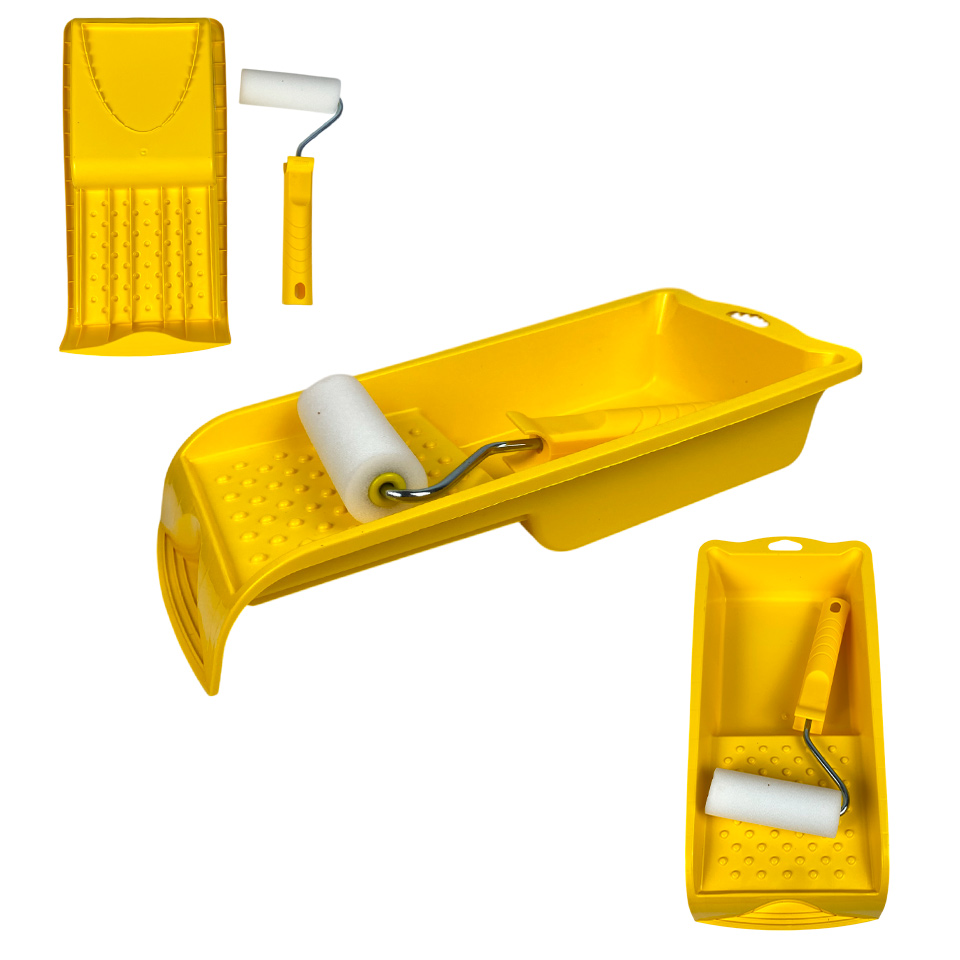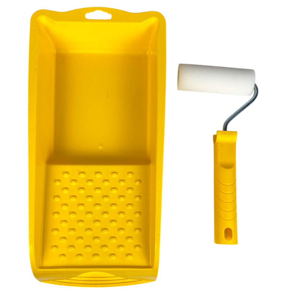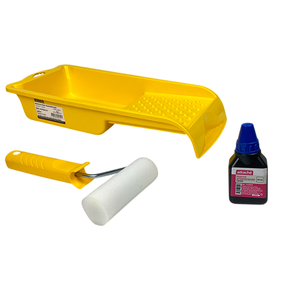 Налить в ванночку краску, равномерно смочить валик и отжать излишки.