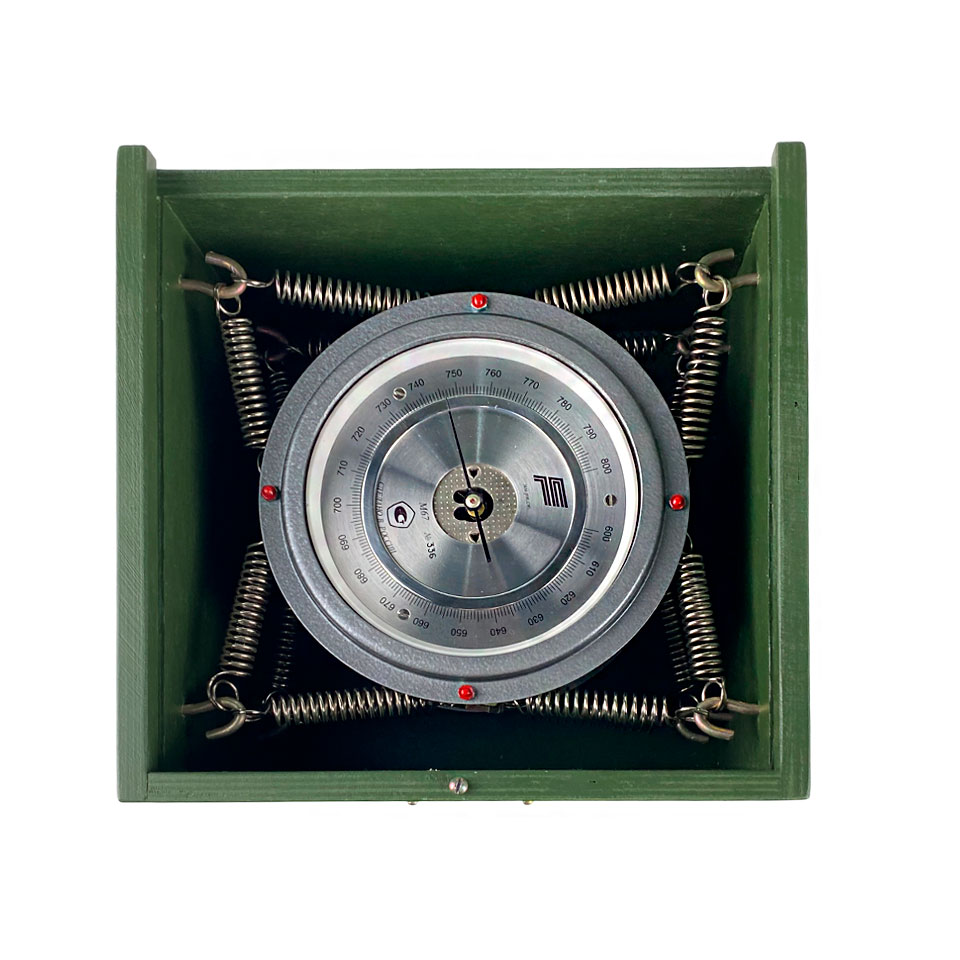 ОписаниеБарометр-анероид М-67 (контрольный). Предназначен для измерения атмосферного давления в наземных условиях для работы в помещениях при температуре от -10 до +50 °С и относительной влажности воздуха до 80%. Принцип действия барометра-анероида М-67 основан на свойстве мембранных анероидных коробок деформироваться при изменении атмосферного давления. При перемене давления линейные перемещения мембран с помощью передаточного рычажного механизма преобразуются в угловые перемещения указывающей стрелки над шкалой. Процесс измерения давления барометром-анероидом крайне прост и не требует специальных навыков. Необходимо расположить барометр в горизонтальное положение шкалой вверх. На следующем этапе требуется устранить трение в механизме прибора – для этого легонько нужно постучать пальцами по корпусу и по стеклу. В процессе проведения измерений, при хранении и транспортировке барометра следует избегать попадания на прибор прямых солнечных лучей и влаги, беречь прибор от резких колебаний температуры, тряски и случайных механических ударов. После пребывания барометра при температуре воздуха ниже -10°С перед началом измерения необходимо, чтобы прибор отстоялся при рабочей температуре в течение нескольких часов. Барометр М-67 относится к неремонтируемым изделиям.