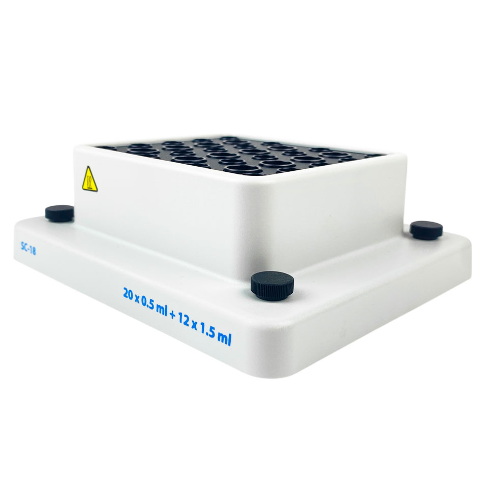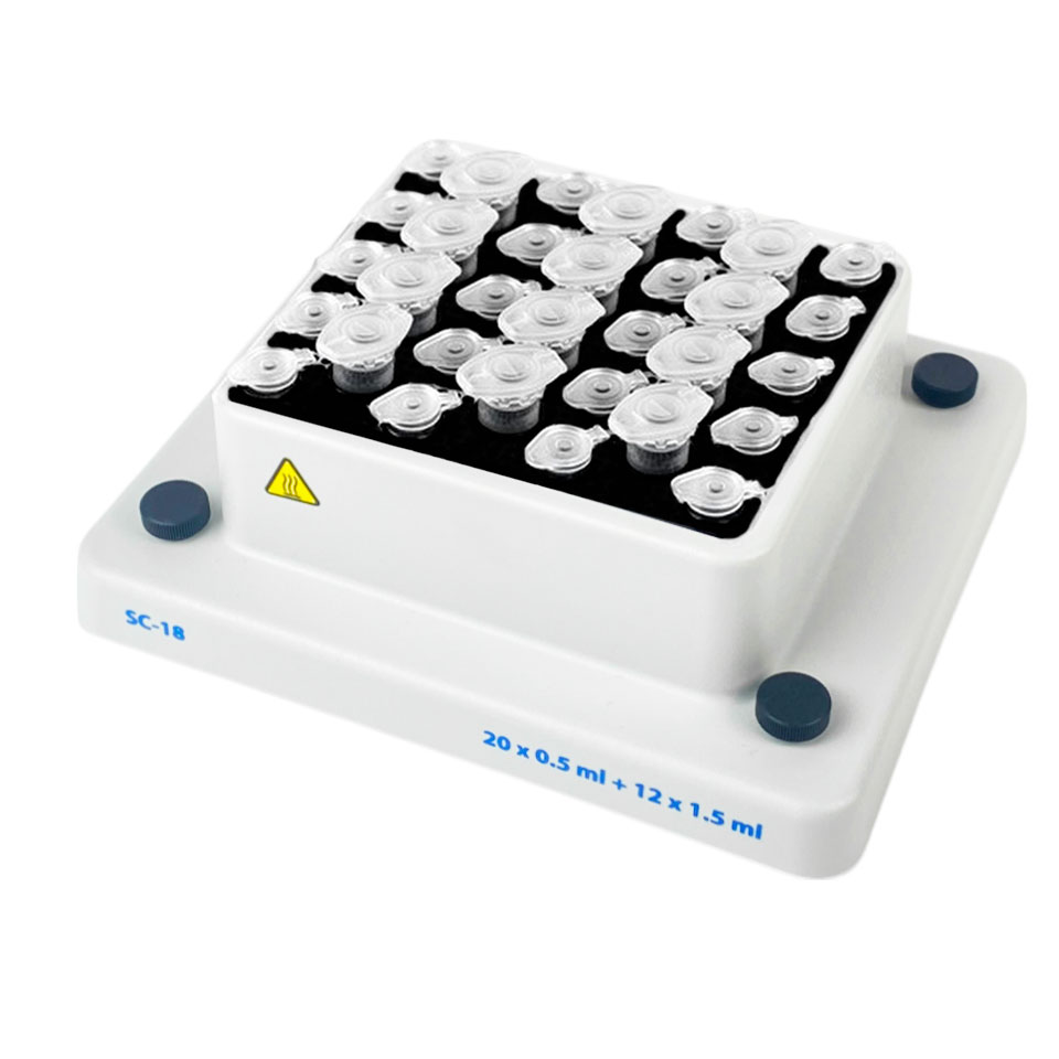 Блок предназначен на 20 пробирок, объёмом 0,5 мл и 12 пробирок, объёмом до 1,5 мл. SC-18 используются для термошейкера TS-100.