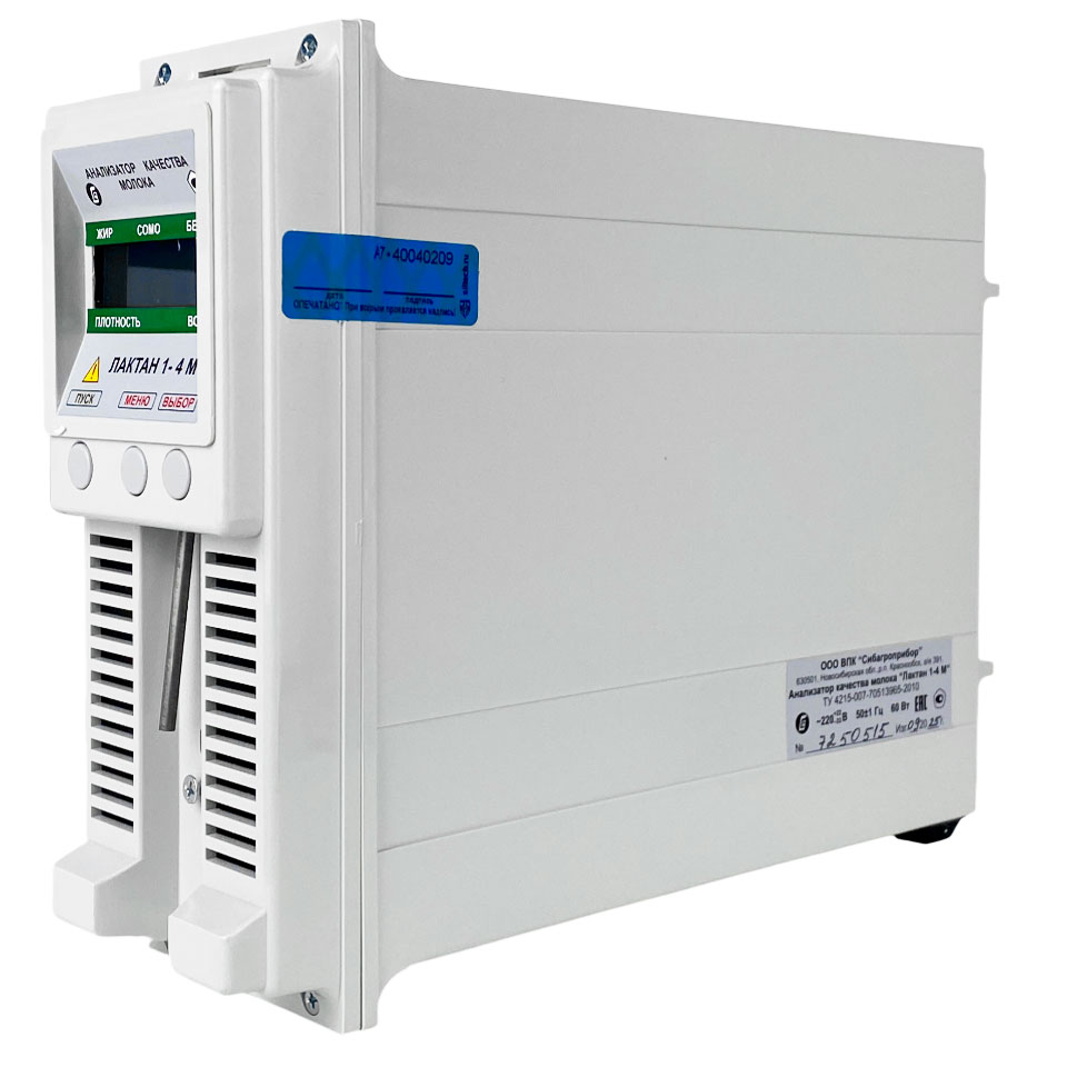 Анализатор обладает возможностью автономного питания от автомобильного аккумулятора. Используемый источник питания определяет устойчивую работу при перепадах напряжения в сети в диапазоне от 100 до 260 В. Это надежный, удобный в использовании и стабильный в работе анализатор высокого качества, позволяющий сократить материальные и временные затраты на проведение анализа. Анализатор заменит лабораторию в крестьянских хозяйствах, колхозах и совхозах, в пунктах приема молока и перерабатывающих заводах, на селекционных станциях, в ветеринарных лабораториях и молочных кухнях. "Лактан 1-4 М" это оптимальное сочетание цены и функциональности.