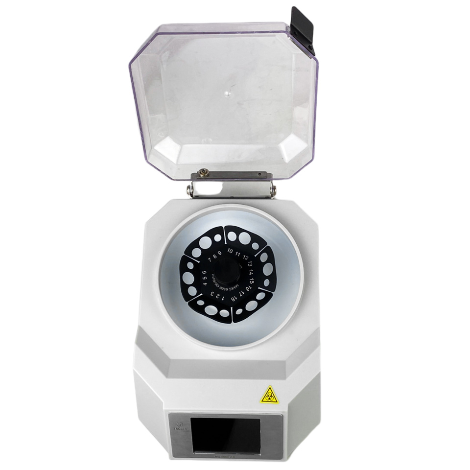 Защита от случайного попадания жидкостейМеханизм центрифуги защищён от случайного попадания жидкостей. Если внутри центрифуги пролился образец, то можно снять защитный колпак и просто вытереть внутреннюю чашу. Панель управления также влагостойкая, можно не бояться что-то пролить.