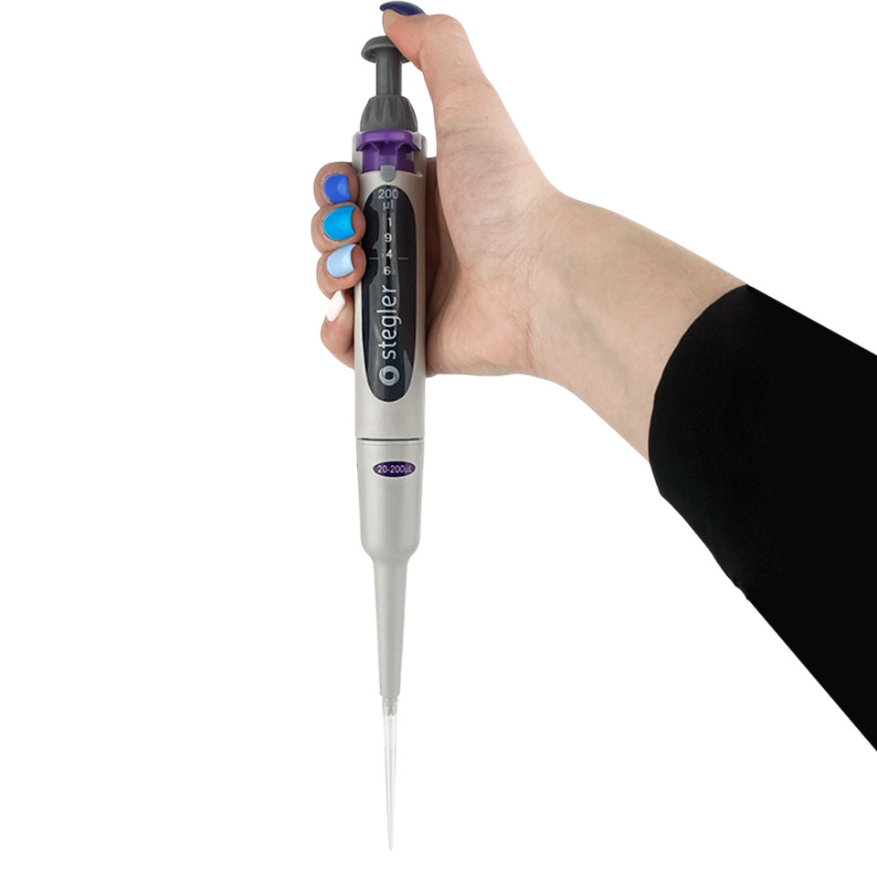 Одноканальный дозатор переменного объёма Stegler SVA-1-20-200 (20-200 мкл, полностью автоклавируемый)