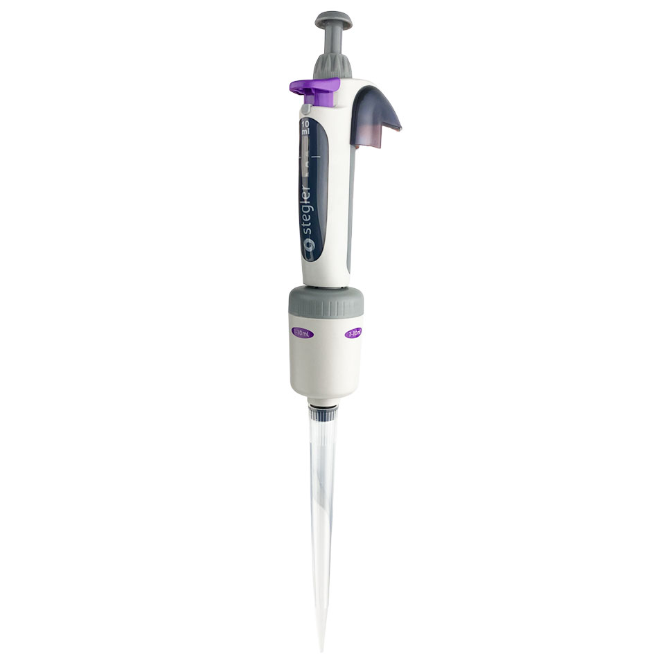 Одноканальный дозатор переменного объёма Stegler SVA-1-10-100 (10-100 мкл, полностью автоклавируемый)