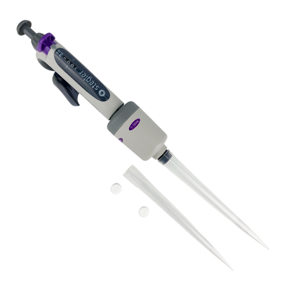 ОписаниеПипеточный автоклавируемый механический дозатор переменного объёма дозирования Stegler SVA-1-1000-10000Stegler SVA-1-1000-10000 — это одноканальный пипеточный механический дозатор с переменным объёмом дозирования. Он работает по принципу воздушной подушки: отмеряемая жидкость всасывается в одноразовый наконечник, предварительно одетый на дозатор, не соприкасаясь с валом или плунжером дозатора.