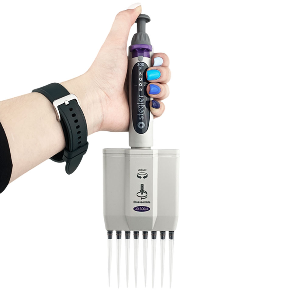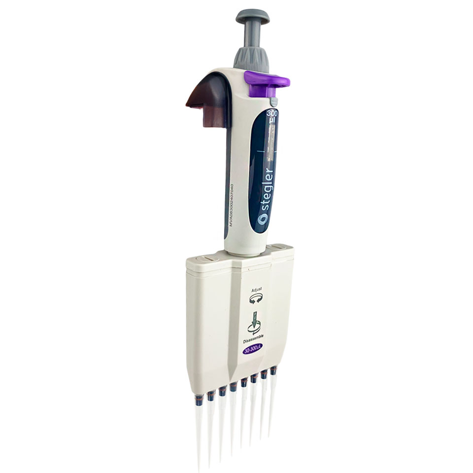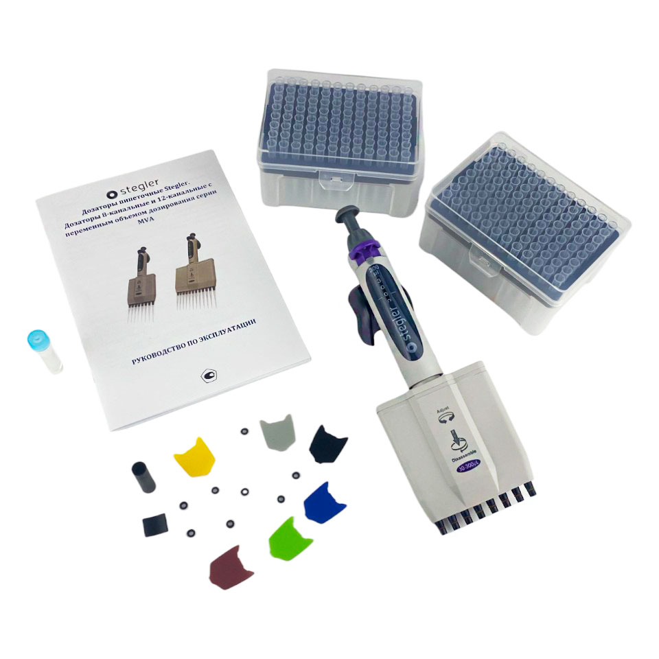 Восьмиканальный дозатор переменного объёма Stegler MVA-8-30-300 (8 каналов, 30-300 мкл, полностью автоклавируемый)